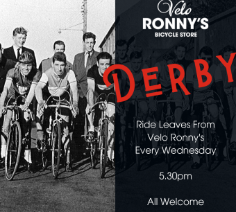 Now that we have more daylight the Velo Ronny’s Derby Ride can roll out every Wednesday at 5.30pm. What: Wednesday