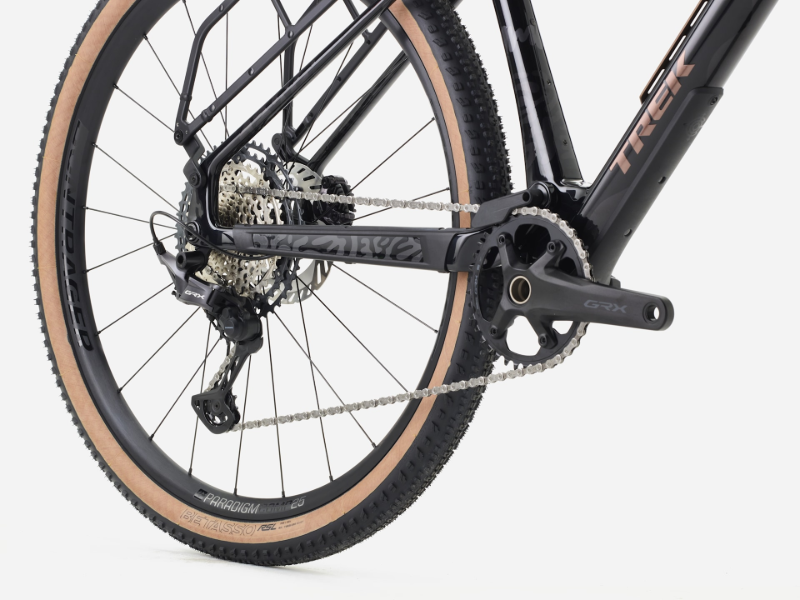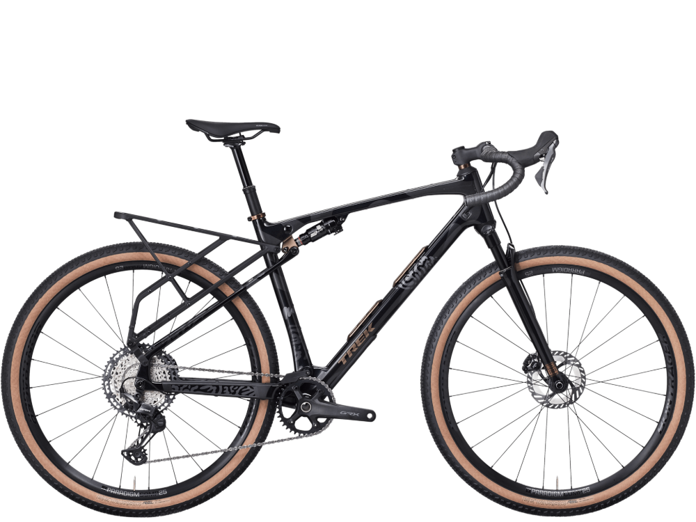 Wildly fun; freakishly capable. The CheckOUT SL 5 is an adventure-ready full-suspension gravel bike for getting far, far out there. Its carbon frame delivers 55 mm of rear travel from a RockShox SIDluxe IsoStrut shock, while a RockShox Rudy XL fork smooths rowdy roads and trails with 60 mm of travel. It comes ready to explore with Bontrager Paradigm Comp wheels, a 12-speed Shimano GRX drivetrain and TranzX dropper post.